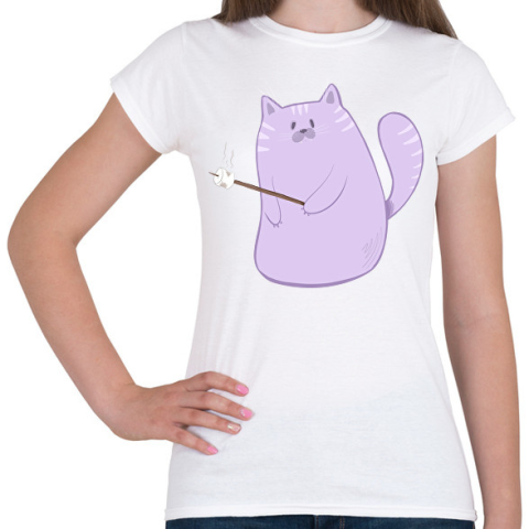 1 kép PRINTFASHION Sütögető cica - Női póló - Fehér