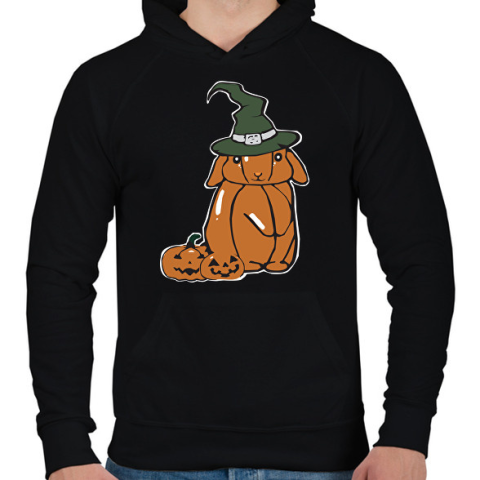 1 kép PRINTFASHION sütőtök nyuszi - Férfi kapucnis pulóver - Fekete