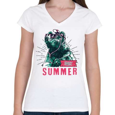 1 kép PRINTFASHION Sweet Summer - Női V-nyakú póló - Fehér
