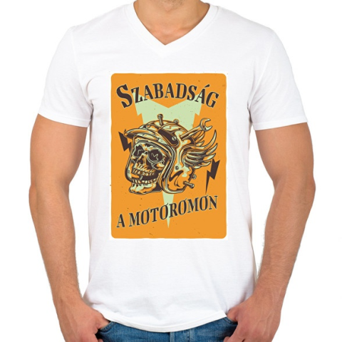 1 kép PRINTFASHION Szabadság a motoromon - Férfi V-nyakú póló - Fehér