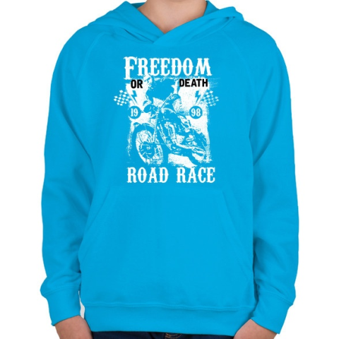 1 kép PRINTFASHION Szabadság vagy halál - Gyerek kapucnis pulóver - Azúrkék