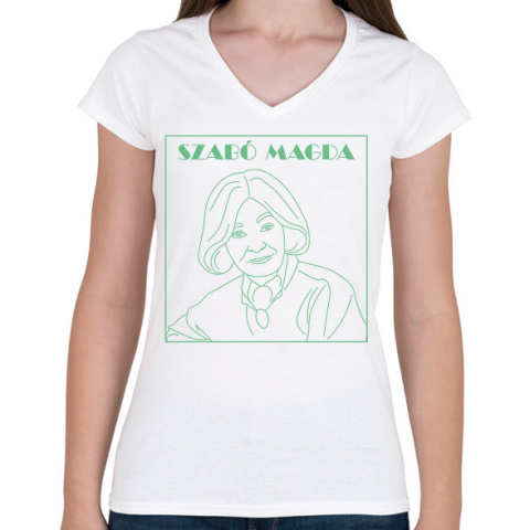 1 kép PRINTFASHION Szabó Magda - Női V-nyakú póló - Fehér