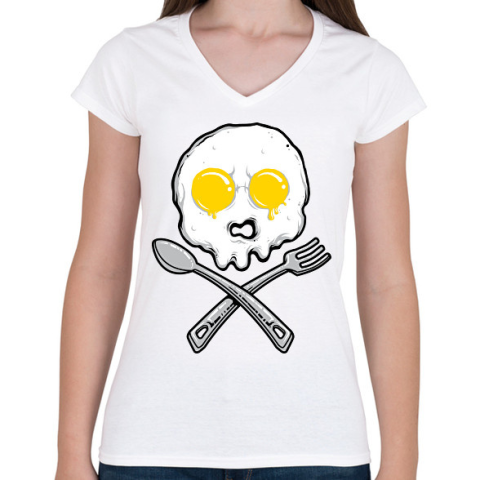 1 kép PRINTFASHION Szakács koponya - Női V-nyakú póló - Fehér