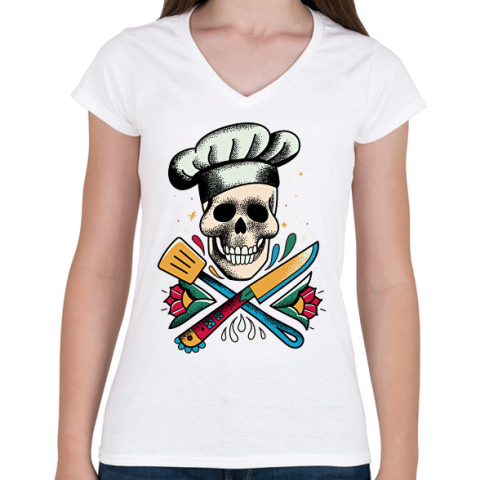 1 kép PRINTFASHION Szakács koponya - Női V-nyakú póló - Fehér