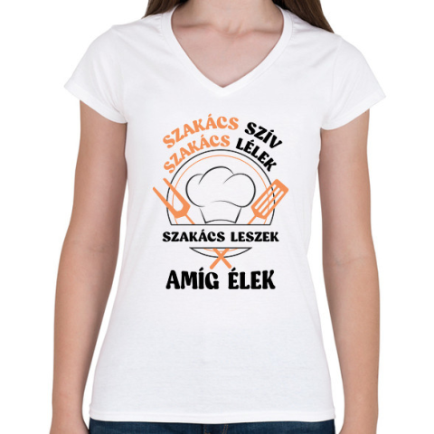 1 kép PRINTFASHION Szakács leszek amíg élek - Női V-nyakú póló - Fehér