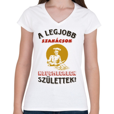 1 kép PRINTFASHION Szakács szülinapja november - Női V-nyakú póló - Fehér