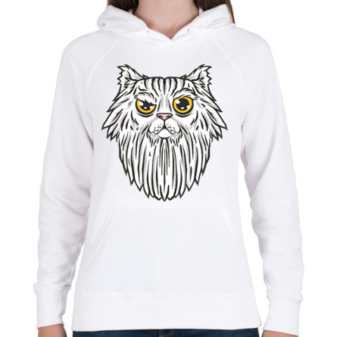 1 kép PRINTFASHION Szakállas macska - Női kapucnis pulóver - Fehér