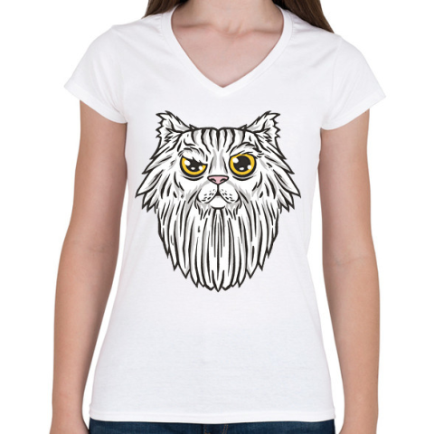 1 kép PRINTFASHION Szakállas macska - Női V-nyakú póló - Fehér