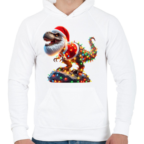 1 kép PRINTFASHION Szakállas Tirex dinoszaurusz mikulás sapkában - karácsonyi - Férfi kapucnis pulóver - Fehér