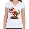 1 kép PRINTFASHION Szakállas Tirex dinoszaurusz mikulás sapkában - karácsonyi - Női V-nyakú póló - Fehér