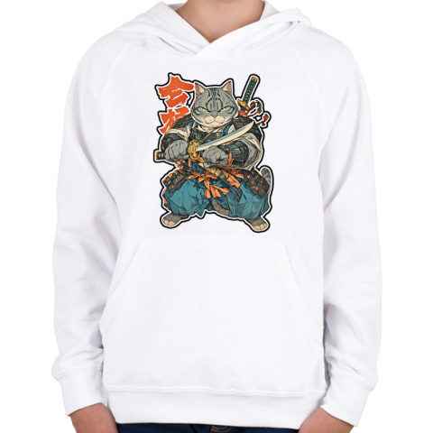 1 kép PRINTFASHION Szamuráj Cica - Gyerek kapucnis pulóver - Fehér