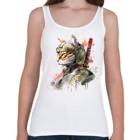 1 kép PRINTFASHION Szamuráj macska japán stílusban - Női atléta - Fehér
