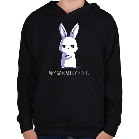1 kép PRINTFASHION Szarkasztikus nyuszi - Gyerek kapucnis pulóver - Fekete