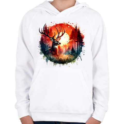 1 kép PRINTFASHION Szarvas - erdei naplemente - ajándék vadászoknak - Gyerek kapucnis pulóver - Fehér