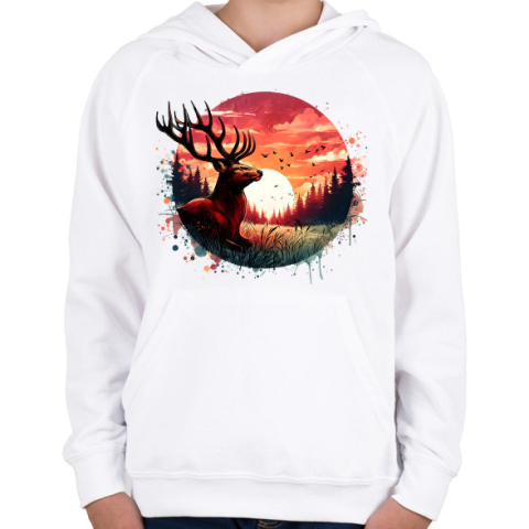 PRINTFASHION Szarvas - erdei naplemente - ajándék vadászoknak - Gyerek kapucnis pulóver - Fehér gyerek pulóver, kardigán 1 kép
