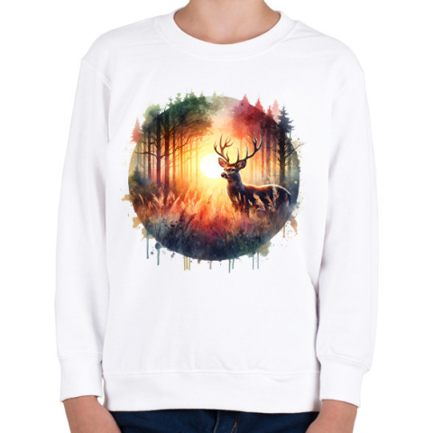 1 kép PRINTFASHION Szarvas - erdei naplemente - ajándék vadászoknak - Gyerek pulóver - Fehér