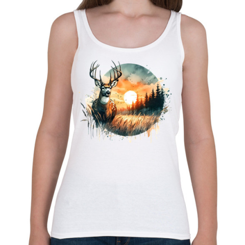 1 kép PRINTFASHION Szarvas - erdei naplemente - ajándék vadászoknak - Női atléta - Fehér