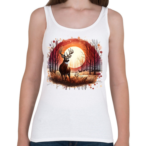 1 kép PRINTFASHION Szarvas - erdei naplemente - ajándék vadászoknak - Női atléta - Fehér