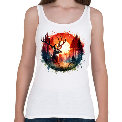 1 kép PRINTFASHION Szarvas - erdei naplemente - ajándék vadászoknak - Női atléta - Fehér
