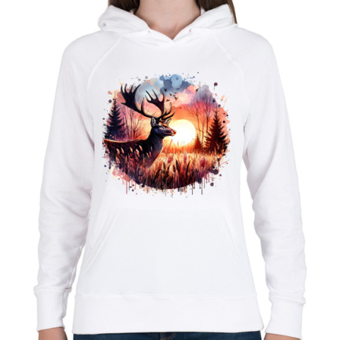 1 kép PRINTFASHION Szarvas - erdei naplemente - ajándék vadászoknak - Női kapucnis pulóver - Fehér