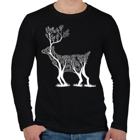 1 kép PRINTFASHION Szarvas fa - Férfi hosszú ujjú póló - Fekete