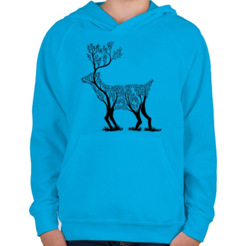 1 kép PRINTFASHION Szarvas fa - Gyerek kapucnis pulóver - Azúrkék