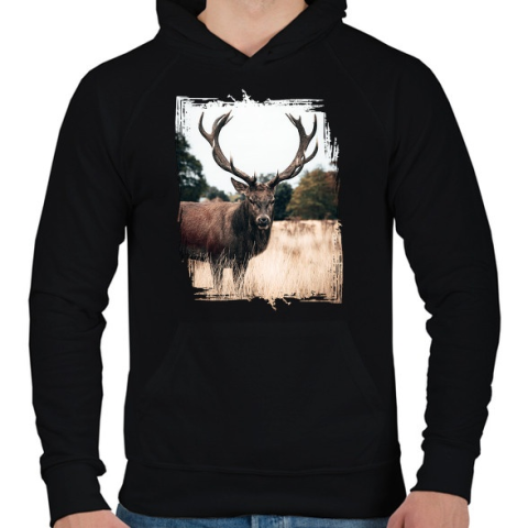 1 kép PRINTFASHION Szarvas - Férfi kapucnis pulóver - Fekete