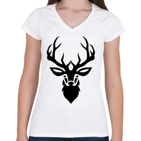 1 kép PRINTFASHION szarvas - Női V-nyakú póló - Fehér