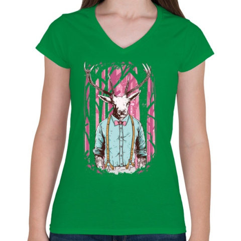 1 kép PRINTFASHION Szarvas - Női V-nyakú póló - Zöld