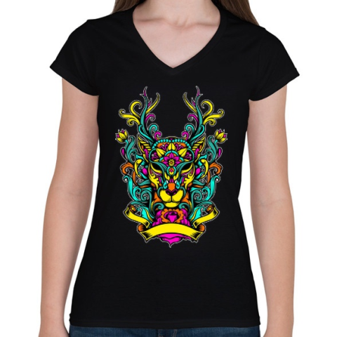 1 kép PRINTFASHION Szarvas ornamentikából - Női V-nyakú póló - Fekete
