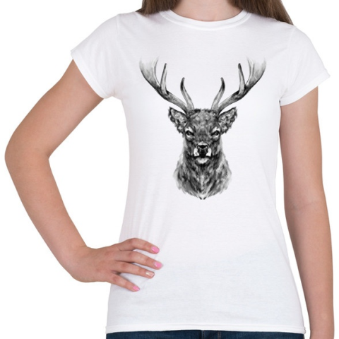 1 kép PRINTFASHION szarvas portré - Női póló - Fehér