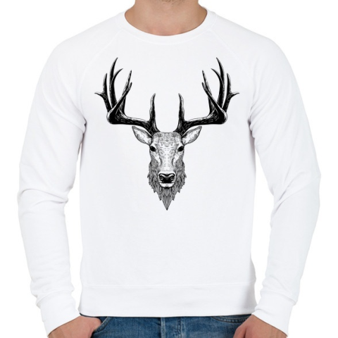 1 kép PRINTFASHION Szarvasbika - Férfi pulóver - Fehér