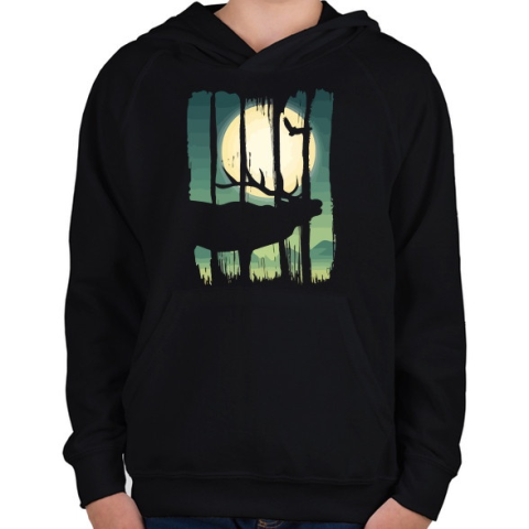 1 kép PRINTFASHION Szarvasbőgés - Gyerek kapucnis pulóver - Fekete