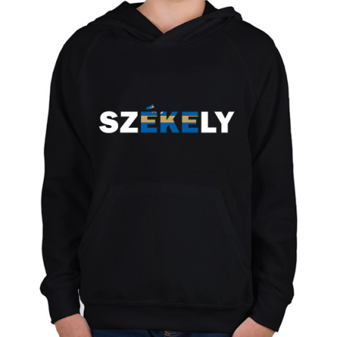 1 kép PRINTFASHION Székely - Gyerek kapucnis pulóver - Fekete