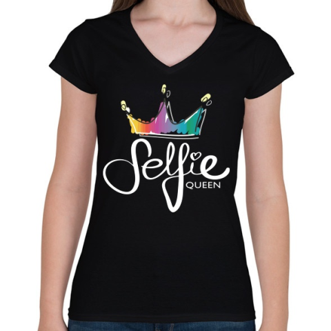 1 kép PRINTFASHION Szelfi királynő - Női V-nyakú póló - Fekete