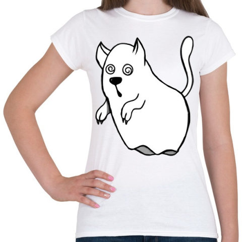 1 kép PRINTFASHION Szellem macska - Női póló - Fehér