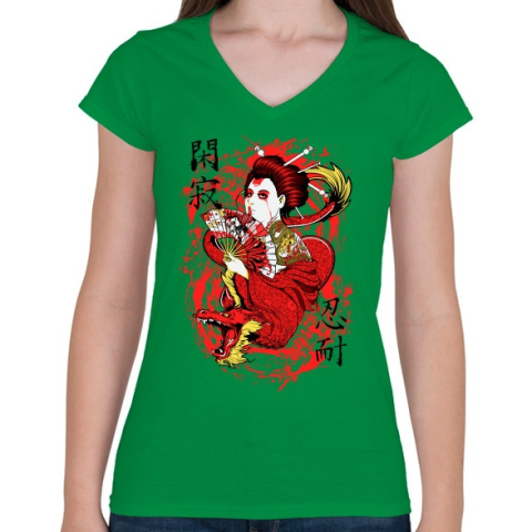 1 kép PRINTFASHION Szellemsárkány - Női V-nyakú póló - Zöld