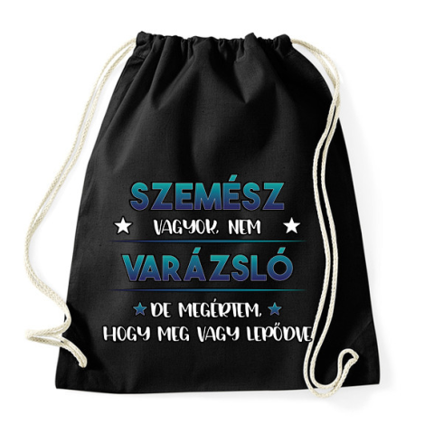 1 kép PRINTFASHION Szemész vagyok nem varázsló - Sportzsák, Tornazsák - Fekete