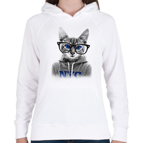 1 kép PRINTFASHION Szemüveges Macska - Női kapucnis pulóver - Fehér
