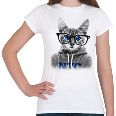 1 kép PRINTFASHION Szemüveges Macska - Női póló - Fehér