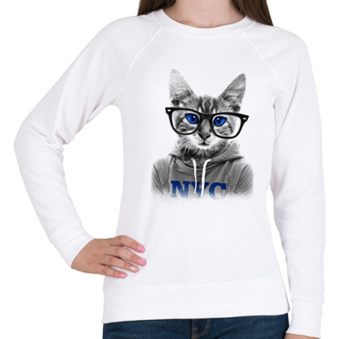 1 kép PRINTFASHION Szemüveges Macska - Női pulóver - Fehér