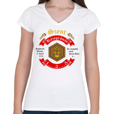 1 kép PRINTFASHION Szent Gránát - Női V-nyakú póló - Fehér