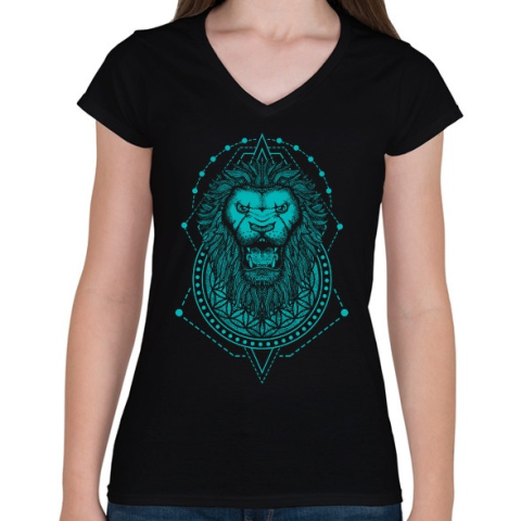 1 kép PRINTFASHION Szent oroszlán - Női V-nyakú póló - Fekete