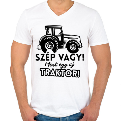1 kép PRINTFASHION Szép vagy mint egy új traktor - Férfi V-nyakú póló - Fehér