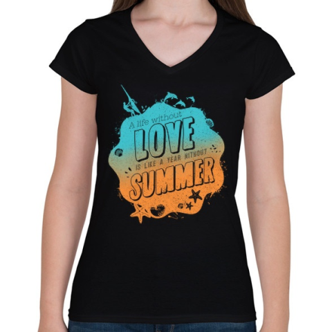 1 kép PRINTFASHION Szerelem - Nyár - Női V-nyakú póló - Fekete