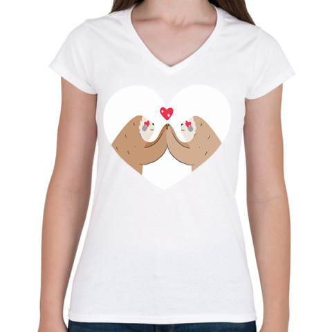 1 kép PRINTFASHION Szerelmes lajhárok - Női V-nyakú póló - Fehér