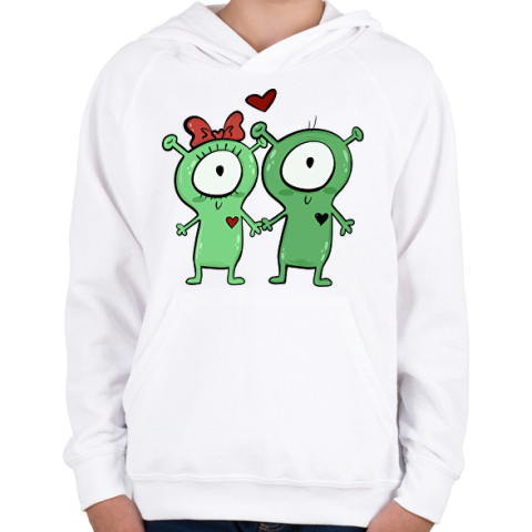1 kép PRINTFASHION Szerelmes ufók - Gyerek kapucnis pulóver - Fehér