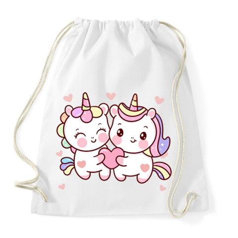 1 kép PRINTFASHION Szerelmes unikornisok - Sportzsák, Tornazsák - Fehér