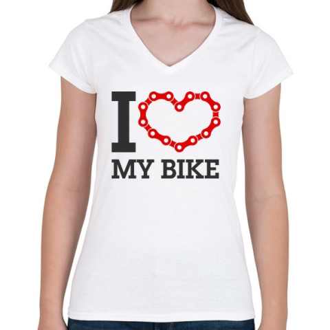 1 kép PRINTFASHION Szeretem a biciklim - Női V-nyakú póló - Fehér