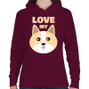 1 kép PRINTFASHION Szeretem a kutyám - Női kapucnis pulóver - Bordó